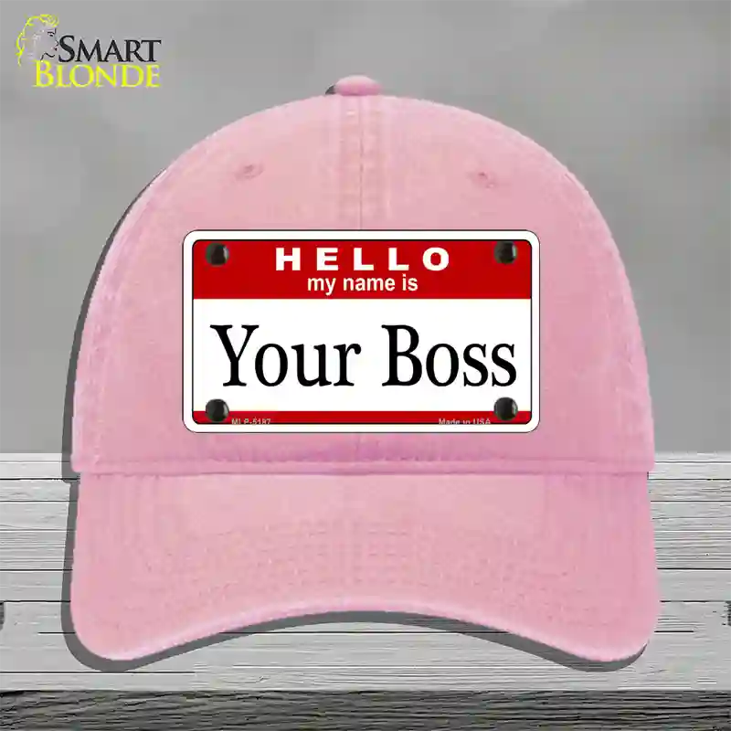 Your Boss Novelty License Plate Hat. Show off your style with our mounted 4" x 2.2" metal patches available in 3 different styles and over 12 different colors. Our metal patches are made out of .025 grade aluminum and the designs are dye sublimated onto the metal to give a quality high gloss finish. Our metal patches are firmly attached using double cap rivets to give the patch an elegant tight fitting look!