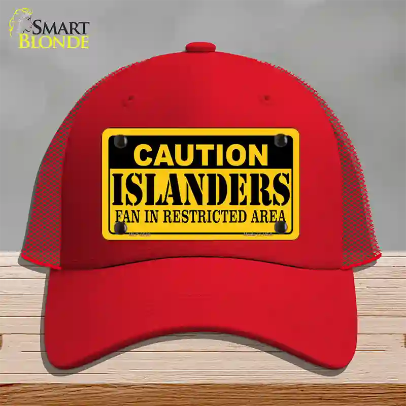 Caution Islanders Novelty License Plate Hat. Show off your style with our mounted 4" x 2.2" metal patches available in 3 different styles and over 12 different colors. Our metal patches are made out of .025 grade aluminum and the designs are dye sublimated onto the metal to give a quality high gloss finish. Our metal patches are firmly attached using double cap rivets to give the patch an elegant tight fitting look!