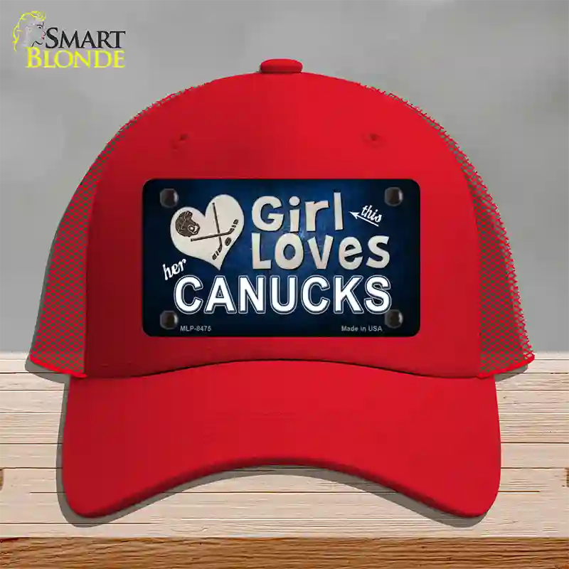 This Girl Loves Her Canucks Novelty License Plate Hat - Mesh / Black is backordered and will ship as soon as it is back in stock.