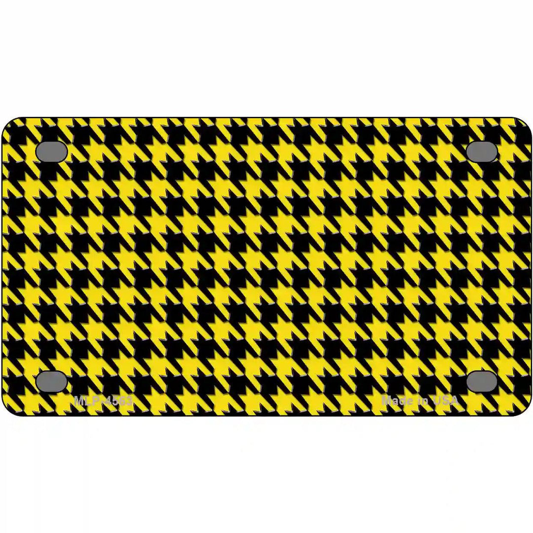 Yellow Black Houndstooth Metal Novelty License Plate. Offering our unique license plate designs in a 12" Standard Automotive License Plate, 7" Motorcycle/ATV Plate, 6" Bike Plate, 4" Miniature License Plate and 24" large license plate garage sign. The 12" x 6" License Plate is made out of a .032 grade aluminum and the other sizes are made out of a .025 grade aluminum, which make them lightweight and durable. All license plates will have pre-drilled holes making these decorative license plates easy to display. Choose between the sizes offered or add all to your cart to show off your design in different ways. These items are proudly made here in the USA. Check out our other different sizes with the same artwork on them in our Key Chains, Rectangle Magnets, Dog Tag Necklaces, and Hat Pins.
