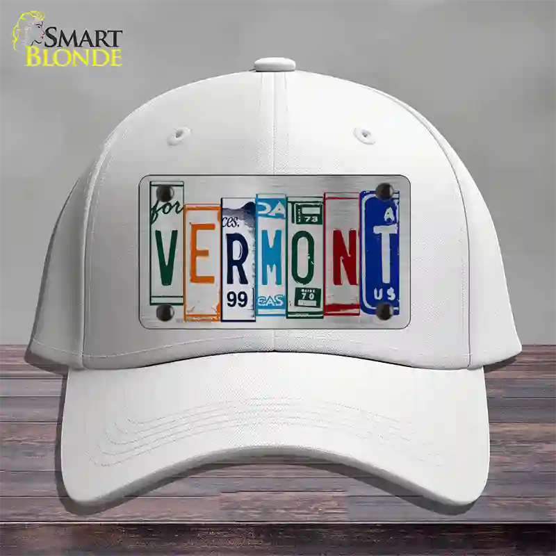 Vermont License Plate Art Novelty License Plate Hat. Show off your style with our mounted 4" x 2.2" metal patches available in 3 different styles and over 12 different colors. Our metal patches are made out of .025 grade aluminum and the designs are dye sublimated onto the metal to give a quality high gloss finish. Our metal patches are firmly attached using double cap rivets to give the patch an elegant tight fitting look!