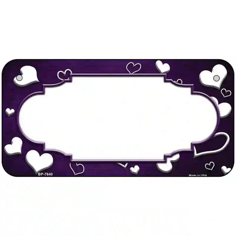 Purple White Love Scallop Oil Rubbed Metal Novelty License Plate. Offering our unique license plate designs in a 12" Standard Automotive License Plate, 7" Motorcycle/ATV Plate, 6" Bike Plate, 4" Miniature License Plate and 24" large license plate garage sign. The 12" x 6" License Plate is made out of a .032 grade aluminum and the other sizes are made out of a .025 grade aluminum, which make them lightweight and durable. All license plates will have pre-drilled holes making these decorative license plates easy to display. Choose between the sizes offered or add all to your cart to show off your design in different ways. These items are proudly made here in the USA. Check out our other different sizes with the same artwork on them in our Key Chains, Rectangle Magnets, Dog Tag Necklaces, and Hat Pins.