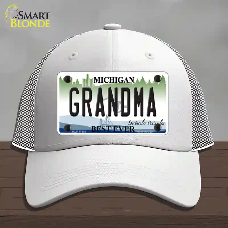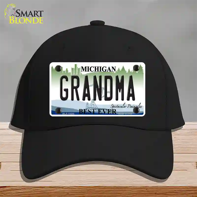 Grandma Michigan Novelty License Plate Hat. Show off your style with our mounted 4" x 2.2" metal patches available in 3 different styles and over 12 different colors. Our metal patches are made out of .025 grade aluminum and the designs are dye sublimated onto the metal to give a quality high gloss finish. Our metal patches are firmly attached using double cap rivets to give the patch an elegant tight fitting look!