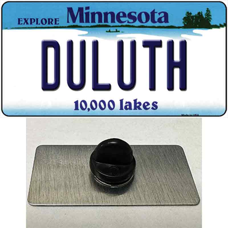 Duluth Minnesota State Novelty Metal Hat Pin. Our hat pins/lapel pins can be used to add flair to any item including hats, suits, backpacks, and anything you can have a pin on. Check out our 14,000+ designs to find some that work for your style! Each pin will come bagged to make sure it stays in pristine condition! Our hat pins measure to be 1.5" x .75" with a nice rubber clutch on the back, with this small touch of style it is sure to make a big appearance when shown off.