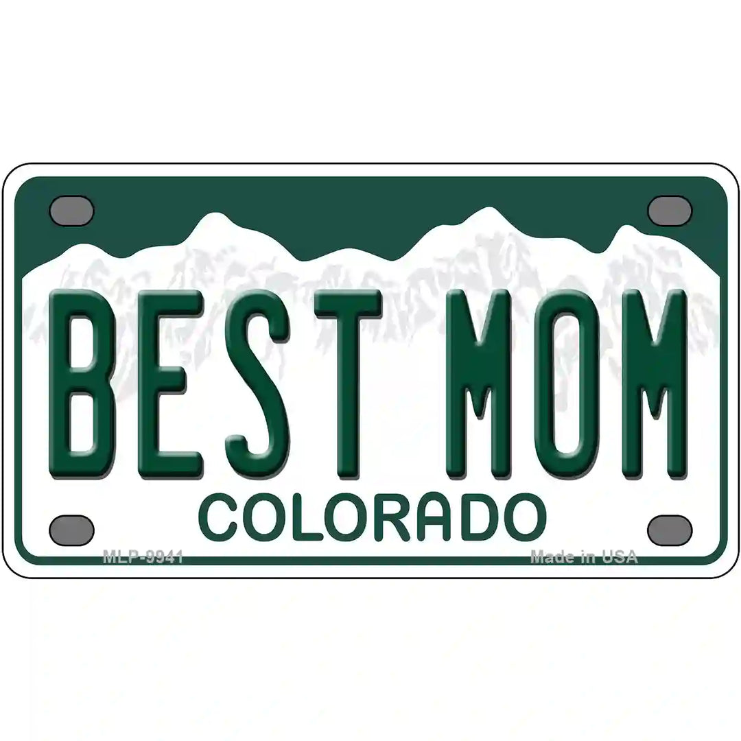 Best Mom Colorado Metal Novelty License Plate. Offering our unique license plate designs in a 12" Standard Automotive License Plate, 7" Motorcycle/ATV Plate, 6" Bike Plate, 4" Miniature License Plate and 24" large license plate garage sign. The 12" x 6" License Plate is made out of a .032 grade aluminum and the other sizes are made out of a .025 grade aluminum, which make them lightweight and durable. All license plates will have pre-drilled holes making these decorative license plates easy to display. Choose between the sizes offered or add all to your cart to show off your design in different ways. These items are proudly made here in the USA. Check out our other different sizes with the same artwork on them in our Key Chains, Rectangle Magnets, Dog Tag Necklaces, and Hat Pins.