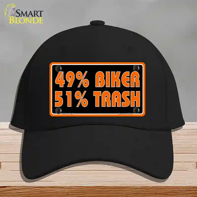 49% Biker 51% Trash Novelty License Plate Hat. Show off your style with our mounted 4" x 2.2" metal patches available in 3 different styles and over 12 different colors. Our metal patches are made out of .025 grade aluminum and the designs are dye sublimated onto the metal to give a quality high gloss finish. Our metal patches are firmly attached using double cap rivets to give the patch an elegant tight fitting look!