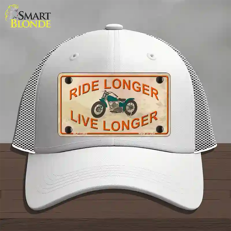 Ride Longer Live Longer Novelty License Plate Hat - Mesh / Black is backordered and will ship as soon as it is back in stock.