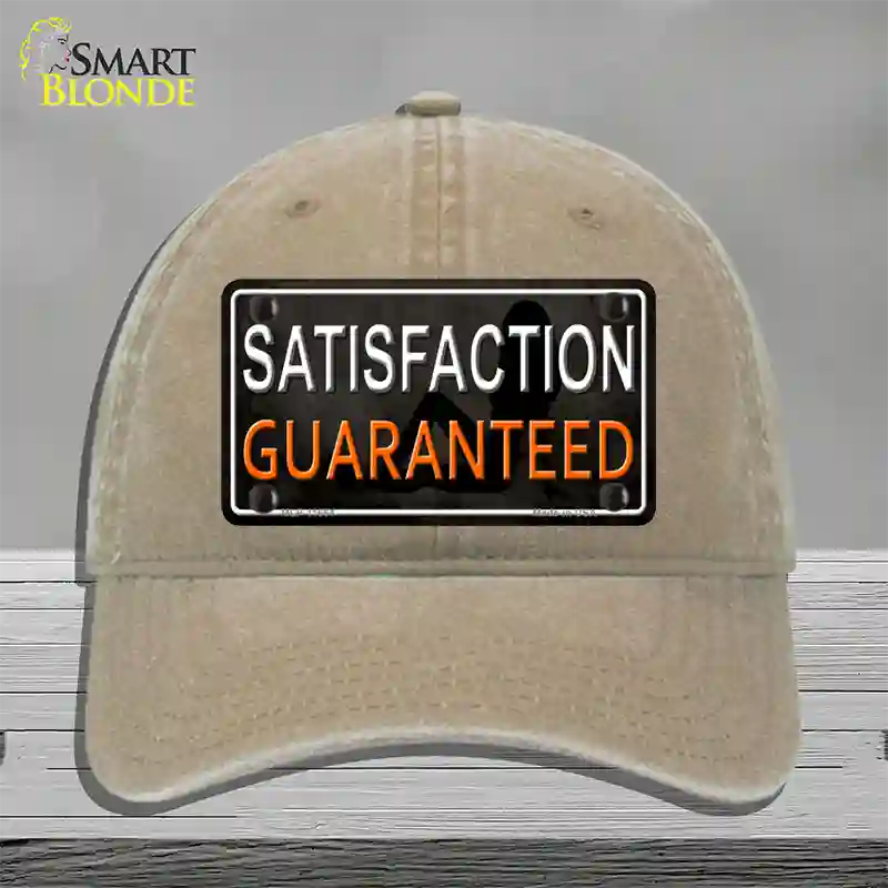 Satisfaction Guaranteed Novelty License Plate Hat. Show off your style with our mounted 4" x 2.2" metal patches available in 3 different styles and over 12 different colors. Our metal patches are made out of .025 grade aluminum and the designs are dye sublimated onto the metal to give a quality high gloss finish. Our metal patches are firmly attached using double cap rivets to give the patch an elegant tight fitting look!
