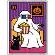 Ghost Watching Movie with Popcorn Metal Novelty Parking Sign P-4624. Offering our unique novelty designs in a 12" x 18" Large Parking Sign, 9" x 12" Small Parking Sign and a 4.5" x 6" Mini Parking Sign. All products are made out of .025 grade aluminum, which make them lightweight and durable. All signs will have pre-drilled holes to make hanging these decorative signs easier. Choose between the sizes offered or add both to your cart to show off your style and decorations anywhere! These items are proudly made here in the USA.