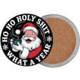 Ho Ho Holy Shit, What A Year Santa Novelty Circle Coaster Set of 4 CC-2100. 3.5" Circle Coaster Set of 4. Each coaster has cork adhered to the back to provide surface protection for use on desks, tables, and shelves. Made of the highest quality aluminum with a weather resistant finish. Proudly made in the USA.