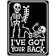 Ive Got Your Back Skeletons Metal Novelty Parking Sign P-4638. Offering our unique novelty designs in a 12" x 18" Large Parking Sign, 9" x 12" Small Parking Sign and a 4.5" x 6" Mini Parking Sign. All products are made out of .025 grade aluminum, which make them lightweight and durable. All signs will have pre-drilled holes to make hanging these decorative signs easier. Choose between the sizes offered or add both to your cart to show off your style and decorations anywhere! These items are proudly made here in the USA.