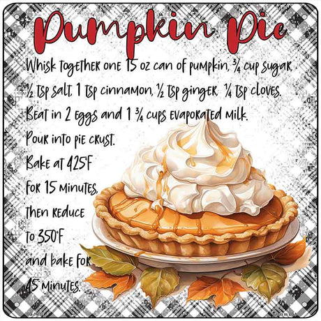 Pumpkin Pie Recipe Novelty Metal Square Sign SQ-1690