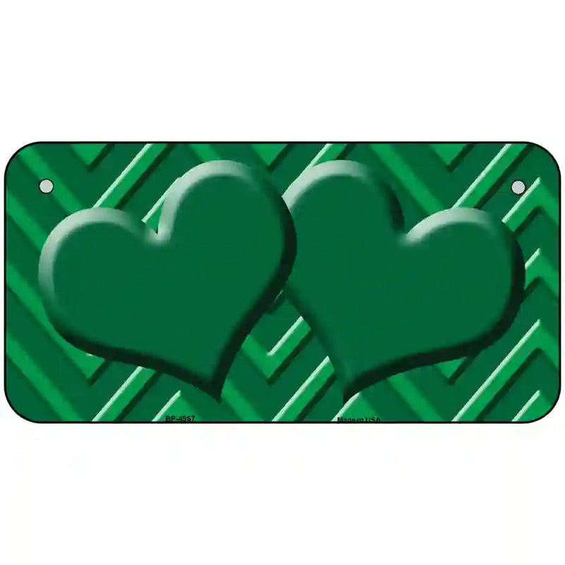 Green Light Green Heart Chevron Metal Novelty License Plate. Offering our unique license plate designs in a 12" Standard Automotive License Plate, 7" Motorcycle/ATV Plate, 6" Bike Plate, 4" Miniature License Plate and 24" large license plate garage sign. The 12" x 6" License Plate is made out of a .032 grade aluminum and the other sizes are made out of a .025 grade aluminum, which make them lightweight and durable. All license plates will have pre-drilled holes making these decorative license plates easy to display. Choose between the sizes offered or add all to your cart to show off your design in different ways. These items are proudly made here in the USA. Check out our other different sizes with the same artwork on them in our Key Chains, Rectangle Magnets, Dog Tag Necklaces, and Hat Pins.