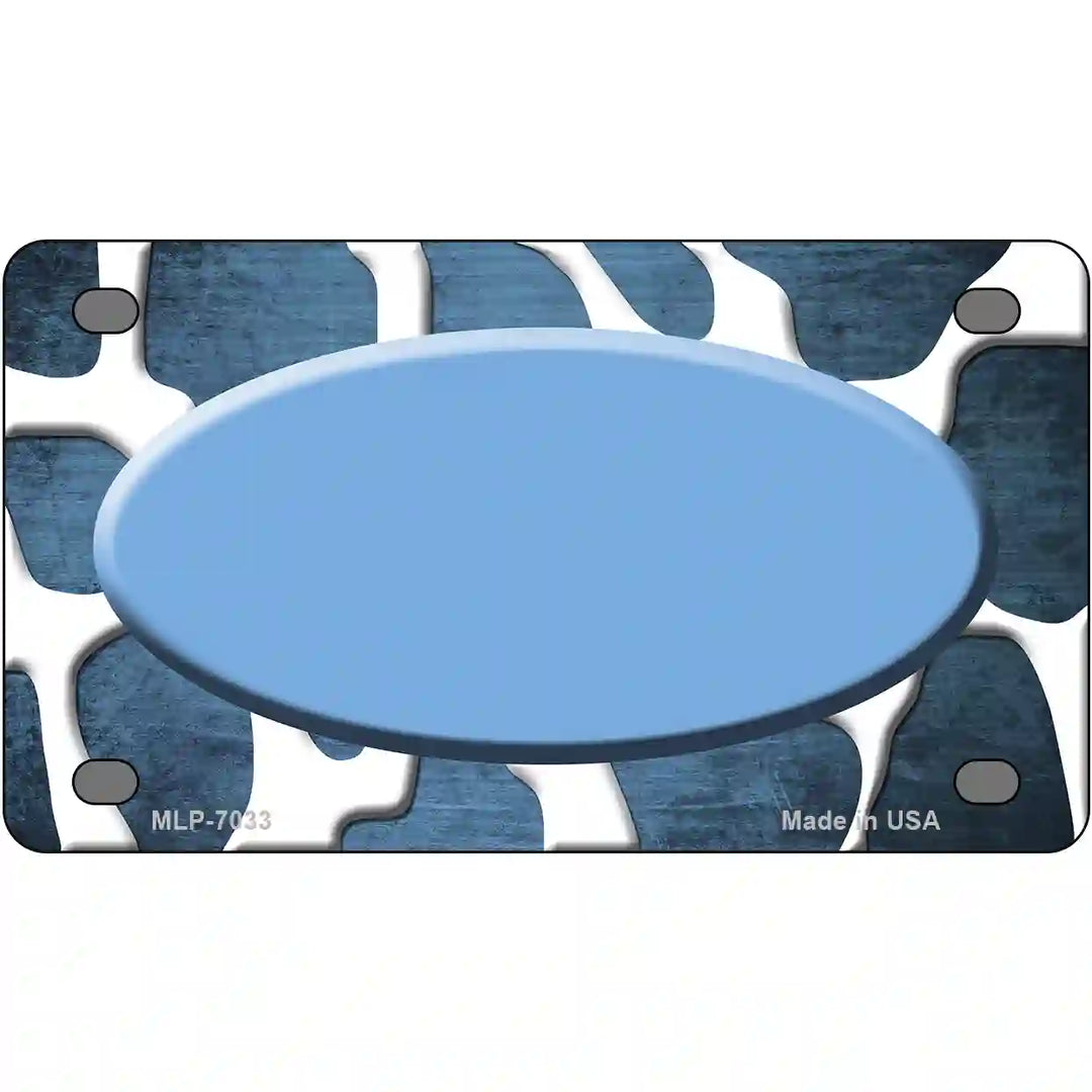 Light Blue White Oval Giraffe Oil Rubbed Metal Novelty License Plate. Offering our unique license plate designs in a 12" Standard Automotive License Plate, 7" Motorcycle/ATV Plate, 6" Bike Plate, 4" Miniature License Plate and 24" large license plate garage sign. The 12" x 6" License Plate is made out of a .032 grade aluminum and the other sizes are made out of a .025 grade aluminum, which make them lightweight and durable. All license plates will have pre-drilled holes making these decorative license plates easy to display. Choose between the sizes offered or add all to your cart to show off your design in different ways. These items are proudly made here in the USA. Check out our other different sizes with the same artwork on them in our Key Chains, Rectangle Magnets, Dog Tag Necklaces, and Hat Pins.