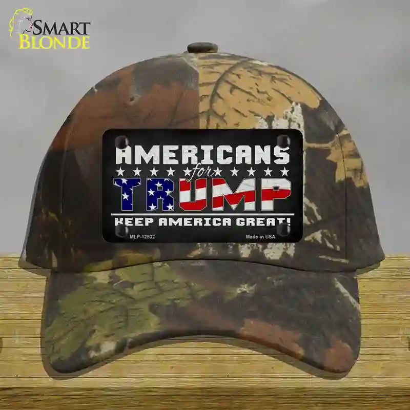 Americans For Trump Novelty License Plate Hat. Show off your style with our mounted 4" x 2.2" metal patches available in 3 different styles and over 12 different colors. Our metal patches are made out of .025 grade aluminum and the designs are dye sublimated onto the metal to give a quality high gloss finish. Our metal patches are firmly attached using double cap rivets to give the patch an elegant tight fitting look!