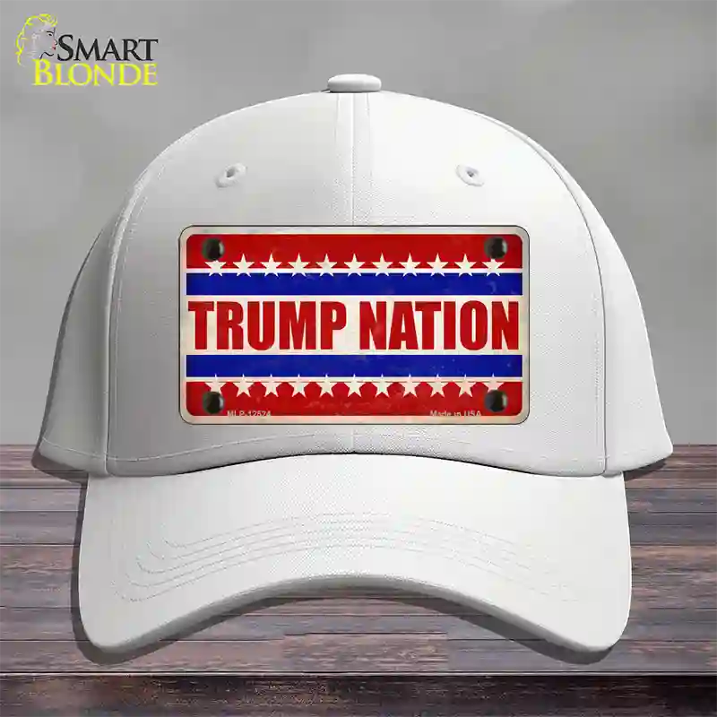Trump Nation Novelty License Plate Hat. Show off your style with our mounted 4" x 2.2" metal patches available in 3 different styles and over 12 different colors. Our metal patches are made out of .025 grade aluminum and the designs are dye sublimated onto the metal to give a quality high gloss finish. Our metal patches are firmly attached using double cap rivets to give the patch an elegant tight fitting look!
