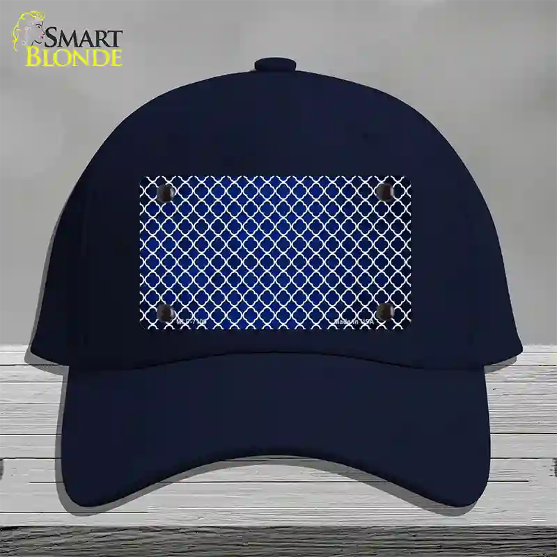 Blue White Quatrefoil Oil Rubbed Novelty License Plate Hat. Show off your style with our mounted 4" x 2.2" metal patches available in 3 different styles and over 12 different colors. Our metal patches are made out of .025 grade aluminum and the designs are dye sublimated onto the metal to give a quality high gloss finish. Our metal patches are firmly attached using double cap rivets to give the patch an elegant tight fitting look!