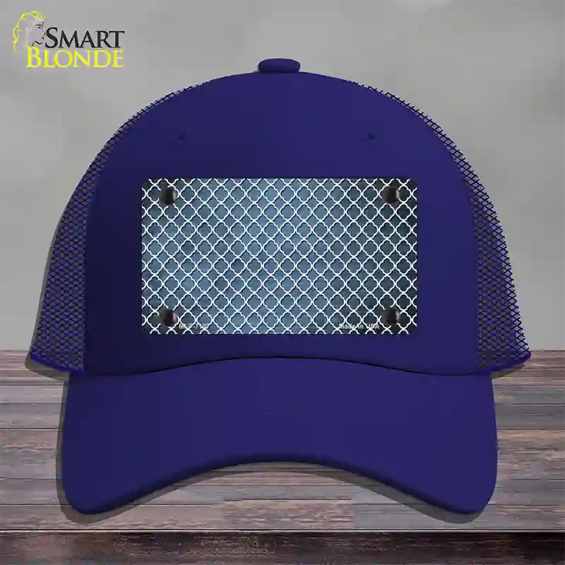Light Blue White Quatrefoil Oil Rubbed Novelty License Plate Hat - Mesh / Black is backordered and will ship as soon as it is back in stock.