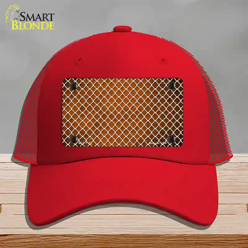 Orange White Quatrefoil Oil Rubbed Novelty License Plate Hat - Mesh / Black is backordered and will ship as soon as it is back in stock.