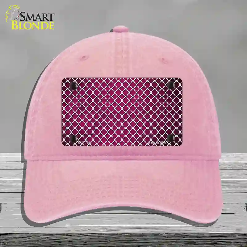 Pink White Quatrefoil Oil Rubbed Novelty License Plate Hat. Show off your style with our mounted 4" x 2.2" metal patches available in 3 different styles and over 12 different colors. Our metal patches are made out of .025 grade aluminum and the designs are dye sublimated onto the metal to give a quality high gloss finish. Our metal patches are firmly attached using double cap rivets to give the patch an elegant tight fitting look!