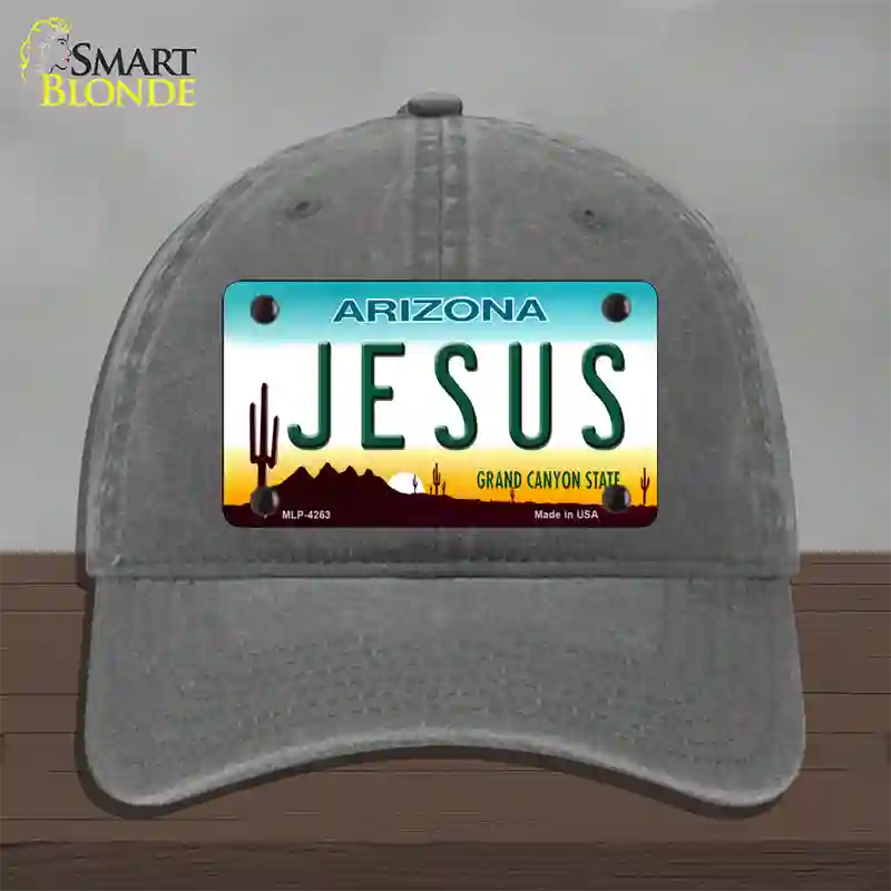 Jesus Arizona State Novelty License Plate Hat. Show off your style with our mounted 4" x 2.2" metal patches available in 3 different styles and over 12 different colors. Our metal patches are made out of .025 grade aluminum and the designs are dye sublimated onto the metal to give a quality high gloss finish. Our metal patches are firmly attached using double cap rivets to give the patch an elegant tight fitting look!