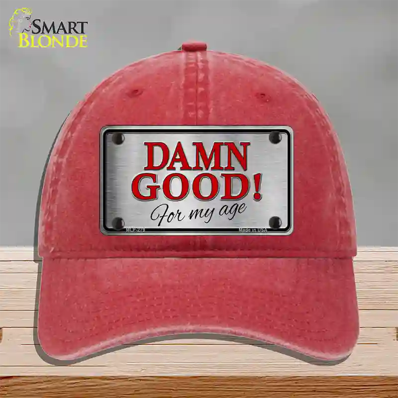 Damn Good Novelty License Plate Hat. Show off your style with our mounted 4" x 2.2" metal patches available in 3 different styles and over 12 different colors. Our metal patches are made out of .025 grade aluminum and the designs are dye sublimated onto the metal to give a quality high gloss finish. Our metal patches are firmly attached using double cap rivets to give the patch an elegant tight fitting look!