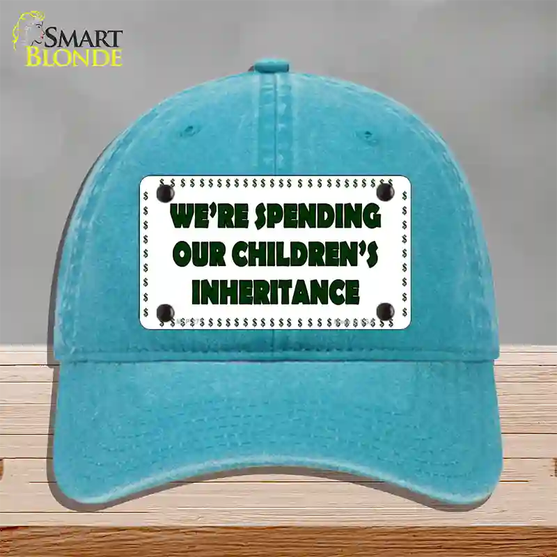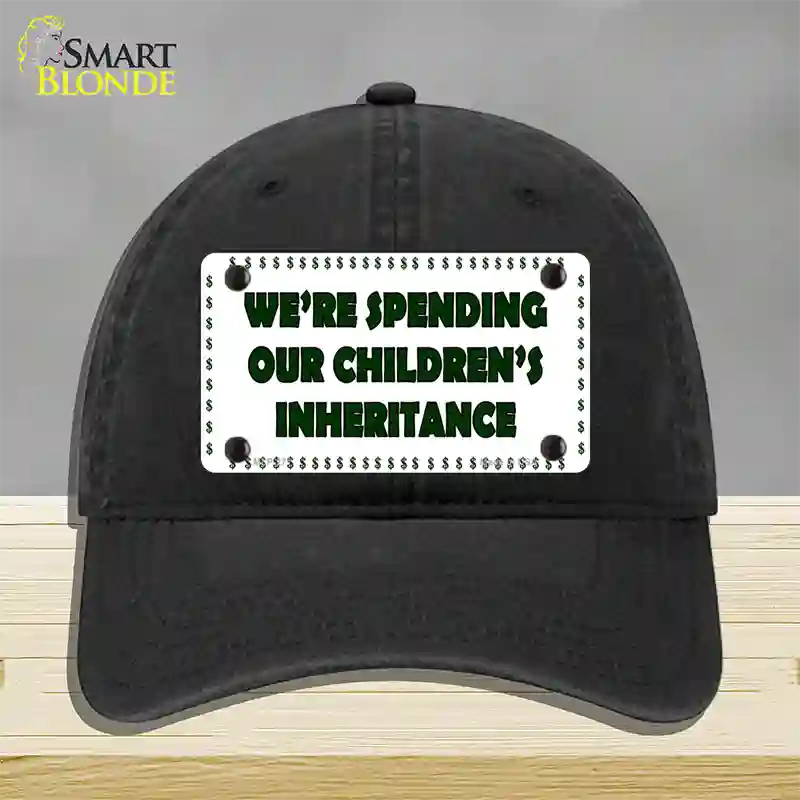 Spending Inheritance Novelty License Plate Hat. Show off your style with our mounted 4" x 2.2" metal patches available in 3 different styles and over 12 different colors. Our metal patches are made out of .025 grade aluminum and the designs are dye sublimated onto the metal to give a quality high gloss finish. Our metal patches are firmly attached using double cap rivets to give the patch an elegant tight fitting look!