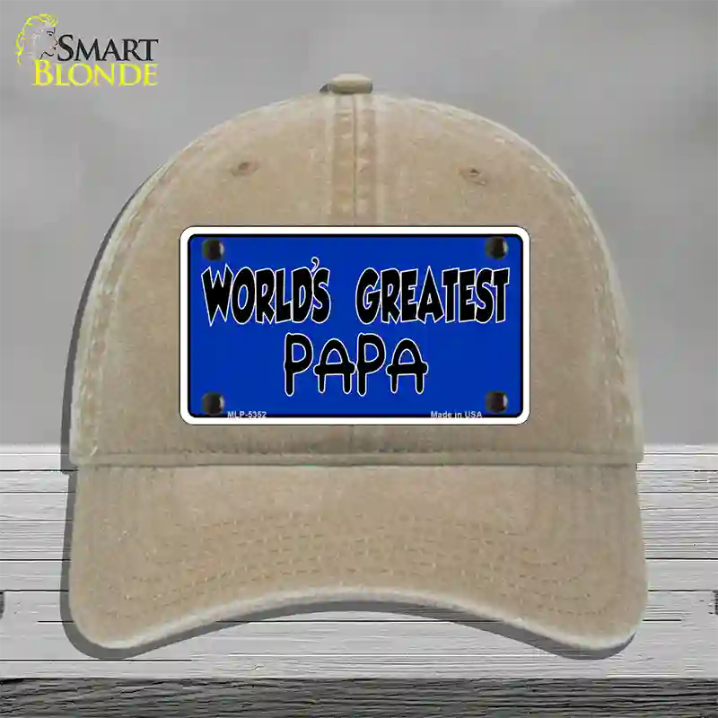Worlds Greatest PaPa Novelty License Plate Hat. Show off your style with our mounted 4" x 2.2" metal patches available in 3 different styles and over 12 different colors. Our metal patches are made out of .025 grade aluminum and the designs are dye sublimated onto the metal to give a quality high gloss finish. Our metal patches are firmly attached using double cap rivets to give the patch an elegant tight fitting look!