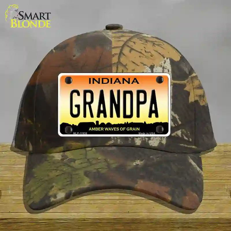 Indiana Grandpa Novelty License Plate Hat. Show off your style with our mounted 4" x 2.2" metal patches available in 3 different styles and over 12 different colors. Our metal patches are made out of .025 grade aluminum and the designs are dye sublimated onto the metal to give a quality high gloss finish. Our metal patches are firmly attached using double cap rivets to give the patch an elegant tight fitting look!