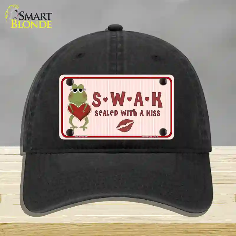 S.W.A.K. Valentine Frog Novelty License Plate Hat. Show off your style with our mounted 4" x 2.2" metal patches available in 3 different styles and over 12 different colors. Our metal patches are made out of .025 grade aluminum and the designs are dye sublimated onto the metal to give a quality high gloss finish. Our metal patches are firmly attached using double cap rivets to give the patch an elegant tight fitting look!