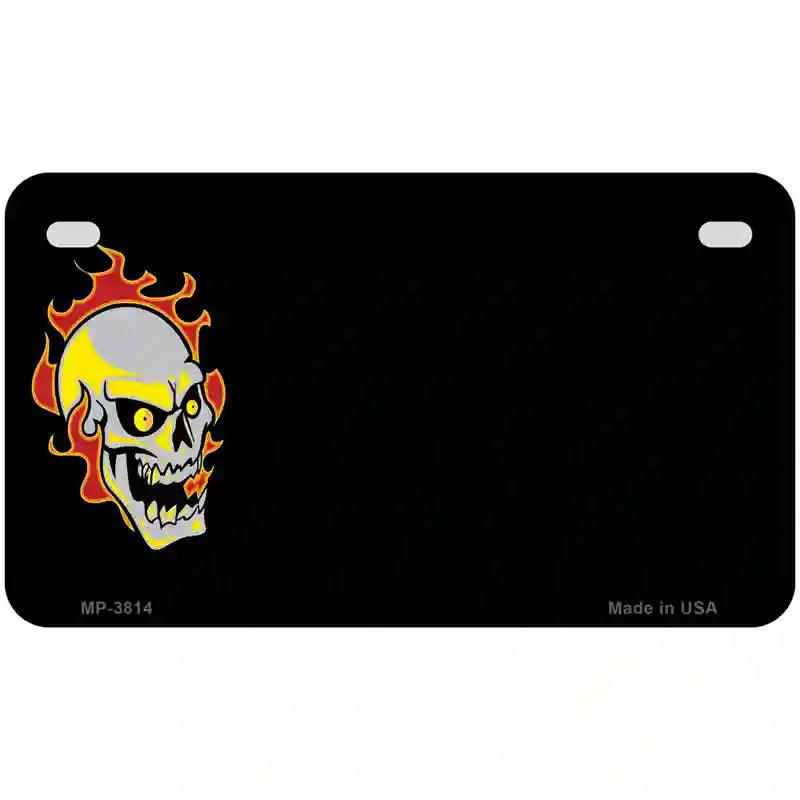 Flaming Skull Offset Metal Novelty License Plate. Offering our unique license plate designs in a 12" Standard Automotive License Plate, 7" Motorcycle/ATV Plate, 6" Bike Plate, 4" Miniature License Plate and 24" large license plate garage sign. The 12" x 6" License Plate is made out of a .032 grade aluminum and the other sizes are made out of a .025 grade aluminum, which make them lightweight and durable. All license plates will have pre-drilled holes making these decorative license plates easy to display. Choose between the sizes offered or add all to your cart to show off your design in different ways. These items are proudly made here in the USA. Check out our other different sizes with the same artwork on them in our Key Chains, Rectangle Magnets, Dog Tag Necklaces, and Hat Pins.