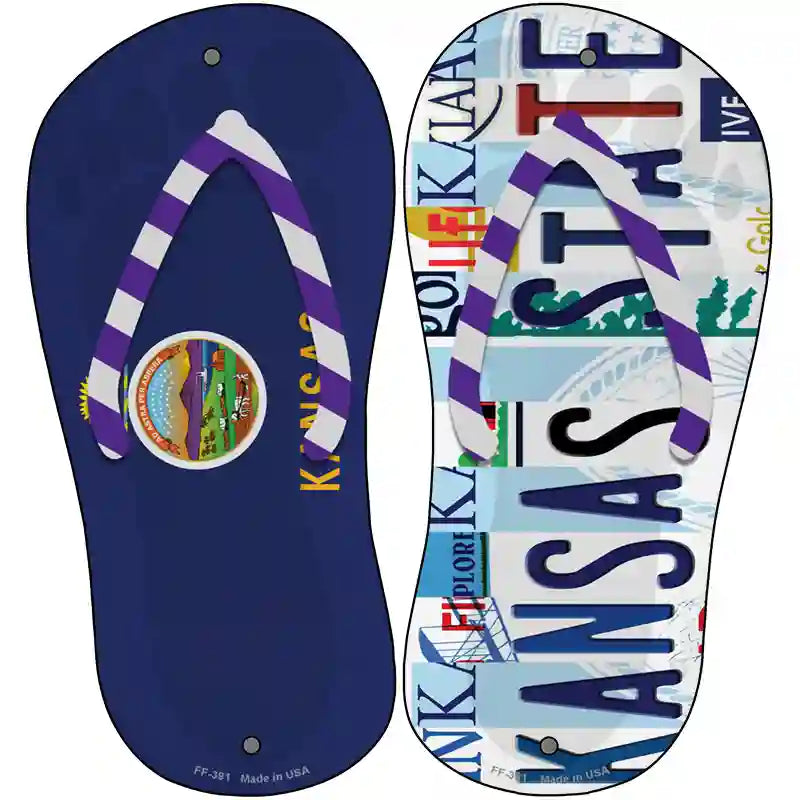 KS Flag|Kansas State Strip Art Novelty Metal Flip Flops (Set of 2) - 8" x 3.75" Sign (FF) is backordered and will ship as soon as it is back in stock.