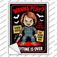 Wanna Play Chucky Novelty Rectangle Sticker Decal P-4634s