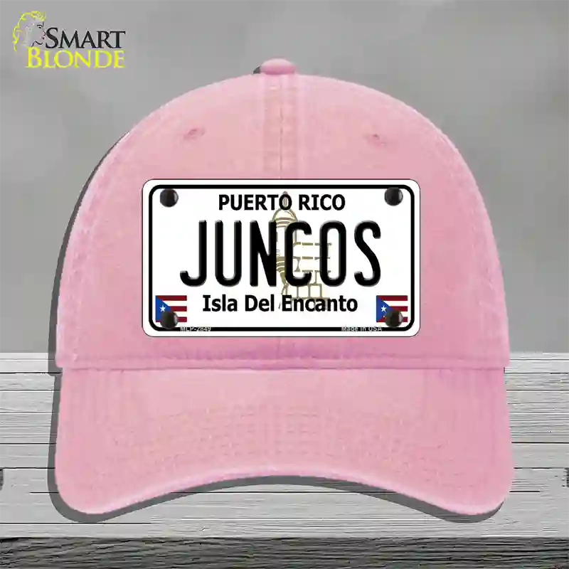 Juncos Puerto Rico Novelty License Plate Hat. Show off your style with our mounted 4" x 2.2" metal patches available in 3 different styles and over 12 different colors. Our metal patches are made out of .025 grade aluminum and the designs are dye sublimated onto the metal to give a quality high gloss finish. Our metal patches are firmly attached using double cap rivets to give the patch an elegant tight fitting look!