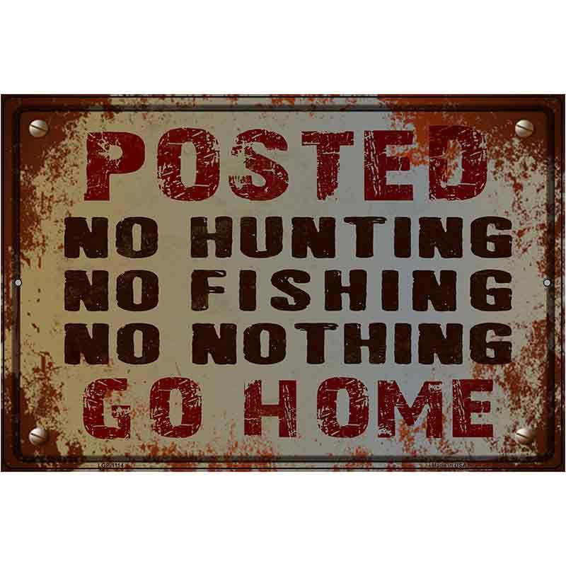 No Hunting No Fishing Metal Novelty Parking Sign. Offering our unique novelty designs in a 12" x 18" Large Parking Sign, 9" x 12" Small Parking Sign and a 4.5" x 6" Mini Parking Sign. All products are made out of .025 grade aluminum, which make them lightweight and durable. All signs will have pre-drilled holes to make hanging these decorative signs easier. Choose between the sizes offered or add both to your cart to show off your style and decorations anywhere! These items are proudly made here in the USA.