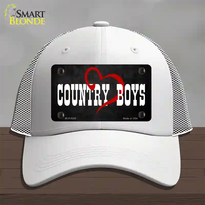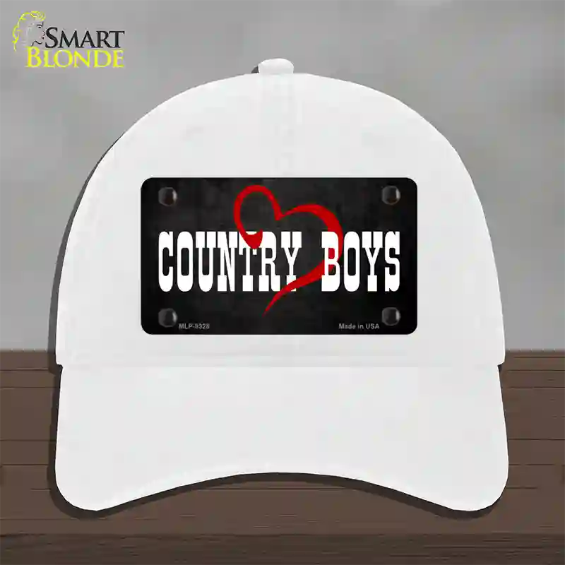 Country Boys Novelty License Plate Hat. Show off your style with our mounted 4" x 2.2" metal patches available in 3 different styles and over 12 different colors. Our metal patches are made out of .025 grade aluminum and the designs are dye sublimated onto the metal to give a quality high gloss finish. Our metal patches are firmly attached using double cap rivets to give the patch an elegant tight fitting look!