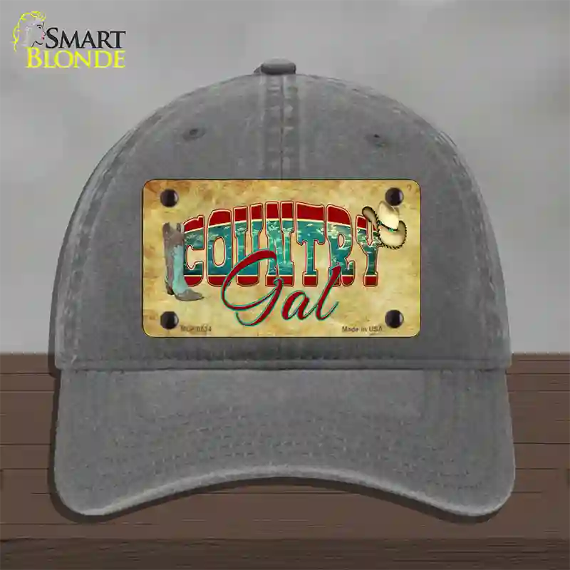 Country Gal Novelty License Plate Hat. Show off your style with our mounted 4" x 2.2" metal patches available in 3 different styles and over 12 different colors. Our metal patches are made out of .025 grade aluminum and the designs are dye sublimated onto the metal to give a quality high gloss finish. Our metal patches are firmly attached using double cap rivets to give the patch an elegant tight fitting look!