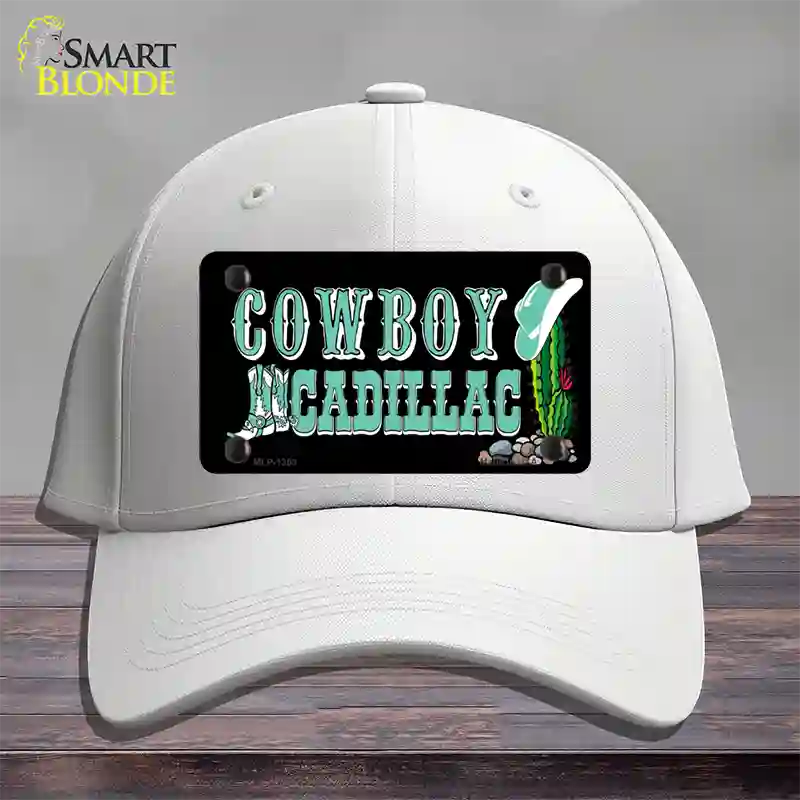 Cowboy Cadillac Novelty License Plate Hat. Show off your style with our mounted 4" x 2.2" metal patches available in 3 different styles and over 12 different colors. Our metal patches are made out of .025 grade aluminum and the designs are dye sublimated onto the metal to give a quality high gloss finish. Our metal patches are firmly attached using double cap rivets to give the patch an elegant tight fitting look!