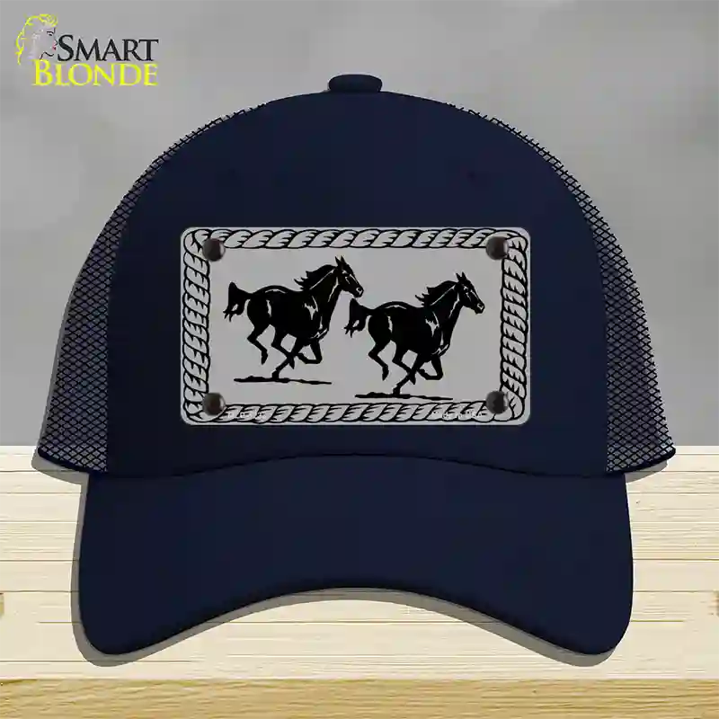 Two Running Horses Novelty License Plate Hat - Mesh / Black is backordered and will ship as soon as it is back in stock.