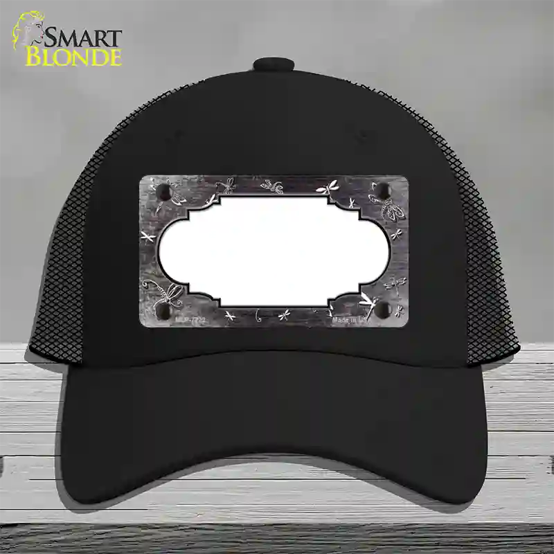 Black White Dragonfly Scallop Oil Rubbed Novelty License Plate Hat - Mesh / Black is backordered and will ship as soon as it is back in stock.