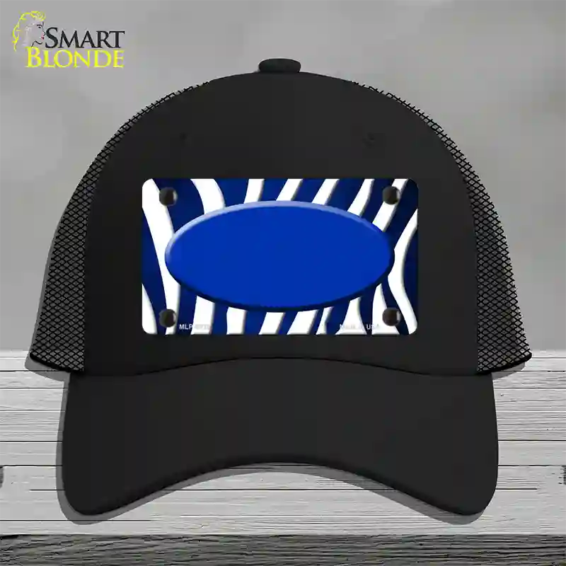Blue White Zebra Oval Oil Rubbed Novelty License Plate Hat - Mesh / Black is backordered and will ship as soon as it is back in stock.