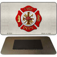 Fire Novelty Magnet M-7859. 3.5" x 2" high gloss metal with magnet on the back. Made of the highest quality aluminum for a weather resistant finish. It is lightweight and durable. Proudly made in the USA.