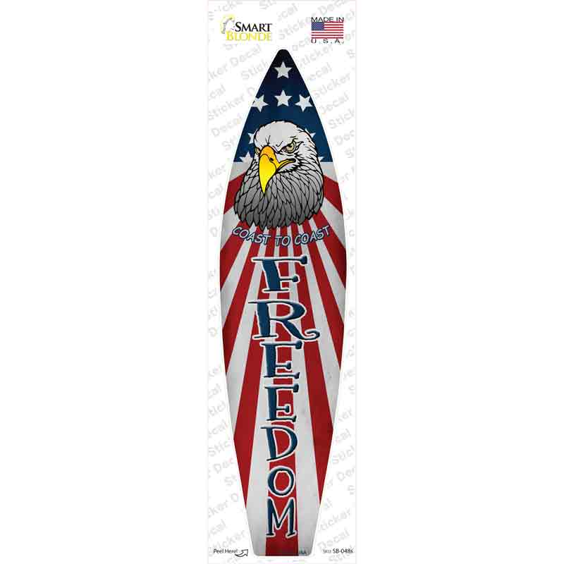 Freedom Novelty Surfboard Sticker Decal. Surfboard sticker decal. With over 30,000 unique designs, our stickers are water resistant and great for use on cars, windows, water bottles, laptops, hardhats, toolboxes and much more. Every sticker is printed on high quality 6 mil sticker paper, and are individually cut out. All designs are available as 4", 8", 12" and 17" stickers. Most orders ship out within 24-48 hours.