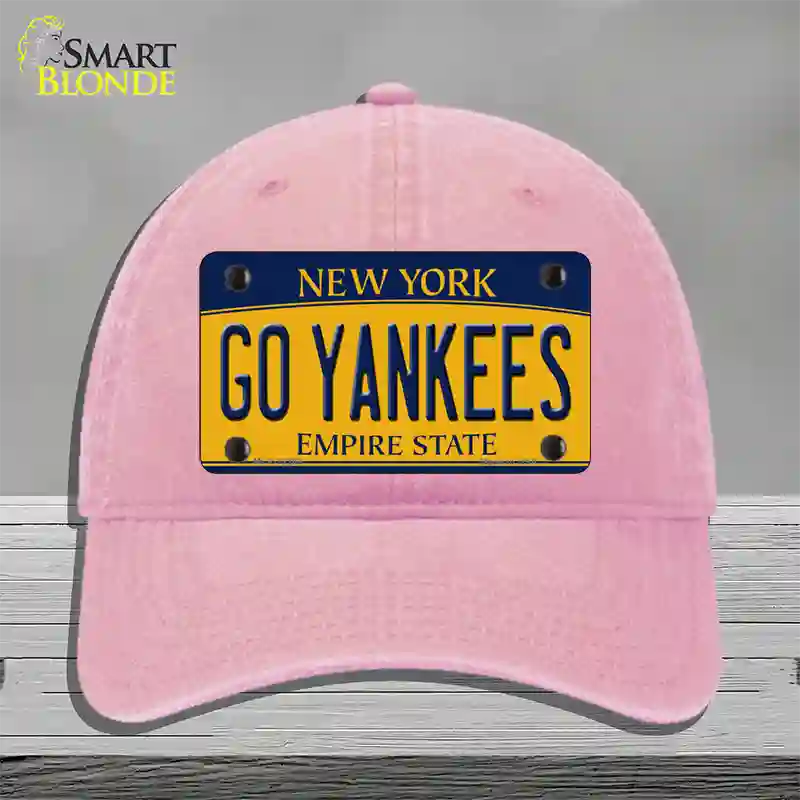 Go Yankees New York Novelty License Plate Hat. Show off your style with our mounted 4" x 2.2" metal patches available in 3 different styles and over 12 different colors. Our metal patches are made out of .025 grade aluminum and the designs are dye sublimated onto the metal to give a quality high gloss finish. Our metal patches are firmly attached using double cap rivets to give the patch an elegant tight fitting look!