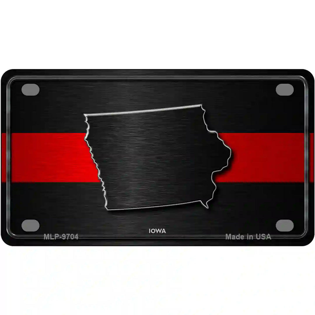 Iowa Thin Red Line Metal Novelty License Plate. Offering our unique license plate designs in a 12" Standard Automotive License Plate, 7" Motorcycle/ATV Plate, 6" Bike Plate, 4" Miniature License Plate and 24" large license plate garage sign. The 12" x 6" License Plate is made out of a .032 grade aluminum and the other sizes are made out of a .025 grade aluminum, which make them lightweight and durable. All license plates will have pre-drilled holes making these decorative license plates easy to display. Choose between the sizes offered or add all to your cart to show off your design in different ways. These items are proudly made here in the USA. Check out our other different sizes with the same artwork on them in our Key Chains, Rectangle Magnets, Dog Tag Necklaces, and Hat Pins.