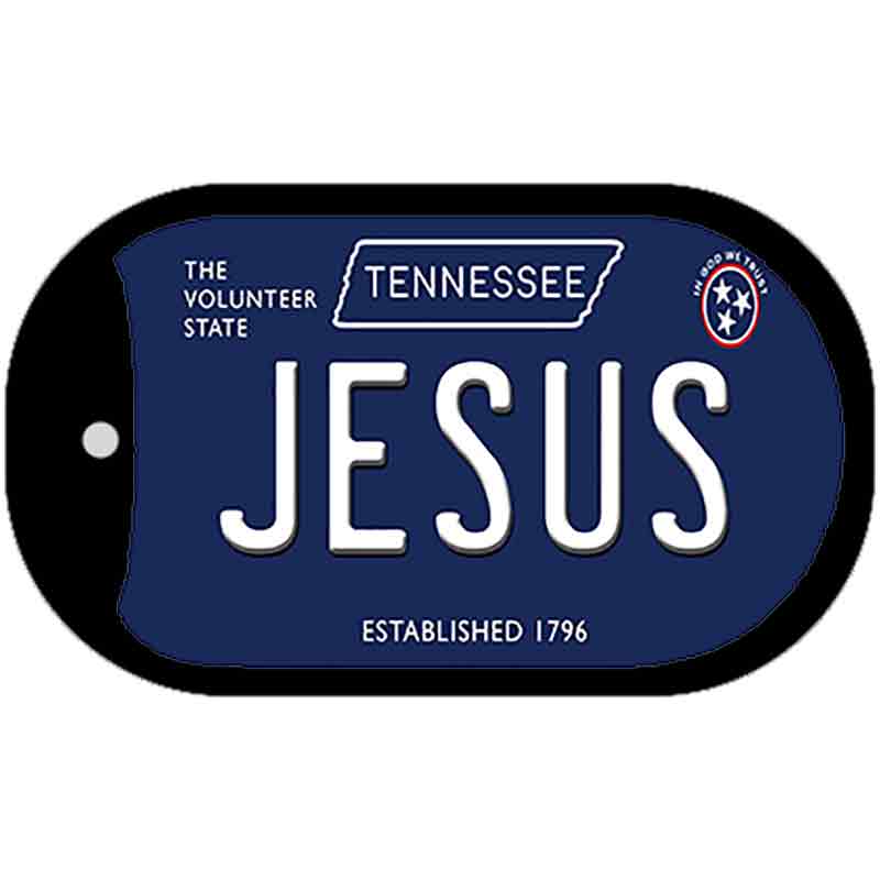 Jesus Tennessee Blue Novelty Metal Dog Tag Necklace - 2" x 1" Dog Tag (DT) is backordered and will ship as soon as it is back in stock.