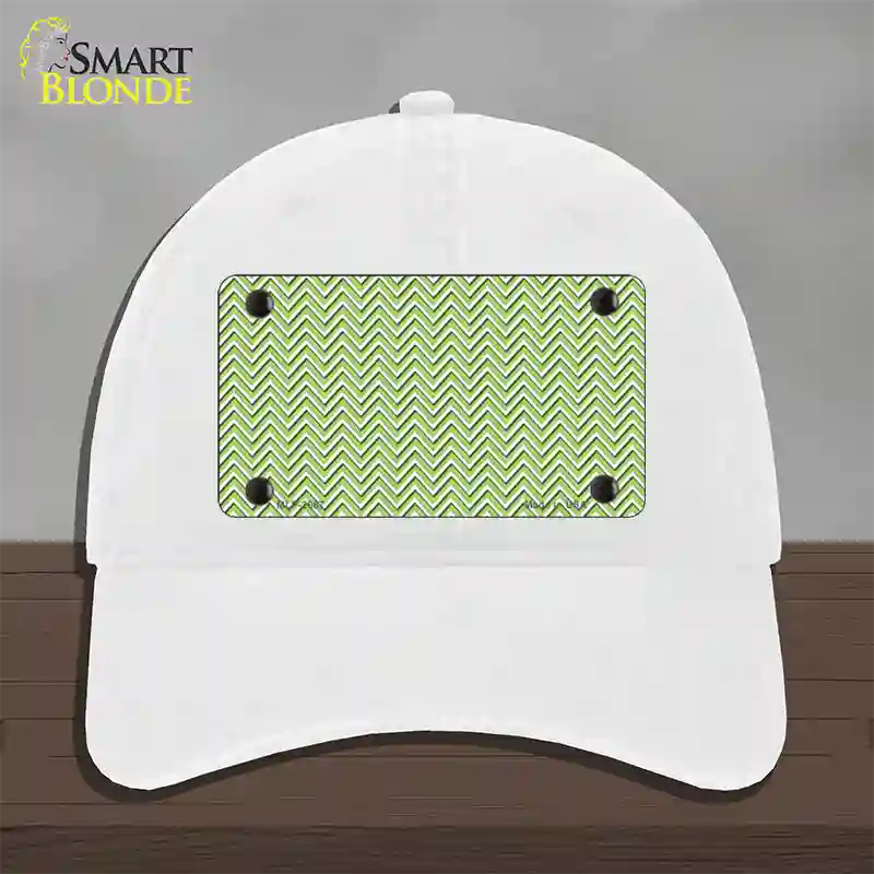 Lime Green White Chevron Novelty License Plate Hat. Show off your style with our mounted 4" x 2.2" metal patches available in 3 different styles and over 12 different colors. Our metal patches are made out of .025 grade aluminum and the designs are dye sublimated onto the metal to give a quality high gloss finish. Our metal patches are firmly attached using double cap rivets to give the patch an elegant tight fitting look!
