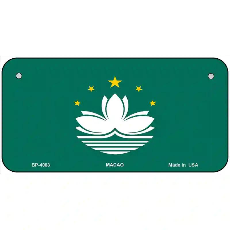 Macao Flag Metal Novelty License Plate. Offering our unique license plate designs in a 12" Standard Automotive License Plate, 7" Motorcycle/ATV Plate, 6" Bike Plate, 4" Miniature License Plate and 24" large license plate garage sign. The 12" x 6" License Plate is made out of a .032 grade aluminum and the other sizes are made out of a .025 grade aluminum, which make them lightweight and durable. All license plates will have pre-drilled holes making these decorative license plates easy to display. Choose between the sizes offered or add all to your cart to show off your design in different ways. These items are proudly made here in the USA. Check out our other different sizes with the same artwork on them in our Key Chains, Rectangle Magnets, Dog Tag Necklaces, and Hat Pins.