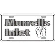 Murrells Inlet SC Novelty Metal License Plate. Offering our unique license plate designs in a 12" Standard Automotive License Plate, 7" Motorcycle/ATV Plate, 6" Bike Plate, 4" Miniature License Plate and 24" large license plate garage sign. The 12" x 6" License Plate is made out of a .032 grade aluminum and the other sizes are made out of a .025 grade aluminum, which make them lightweight and durable. All license plates will have pre-drilled holes making these decorative license plates easy to display. Choose between the sizes offered or add all to your cart to show off your design in different ways. These items are proudly made here in the USA. Check out our other different sizes with the same artwork on them in our Key Chains, Rectangle Magnets, Dog Tag Necklaces, and Hat Pins.