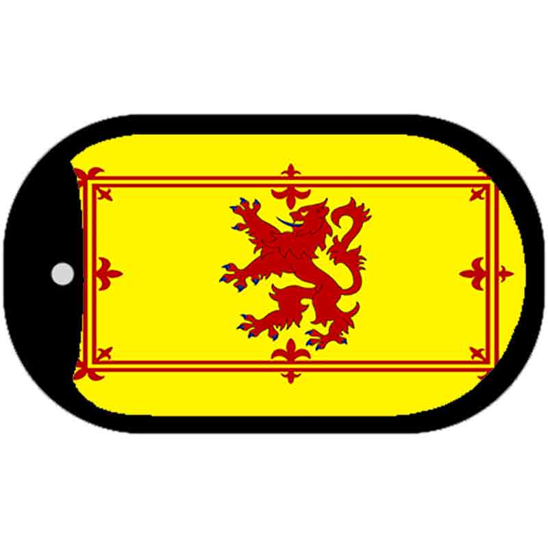 Scotland Rampant Lion Flag Scroll Metal Novelty Dog Tag Necklace DT-494. 1" x 2" dog tag kit including 15" silver chain and silencer. Made of the highest quality aluminum for a weather resistant finish. It is lightweight and durable. Proudly made in the USA.